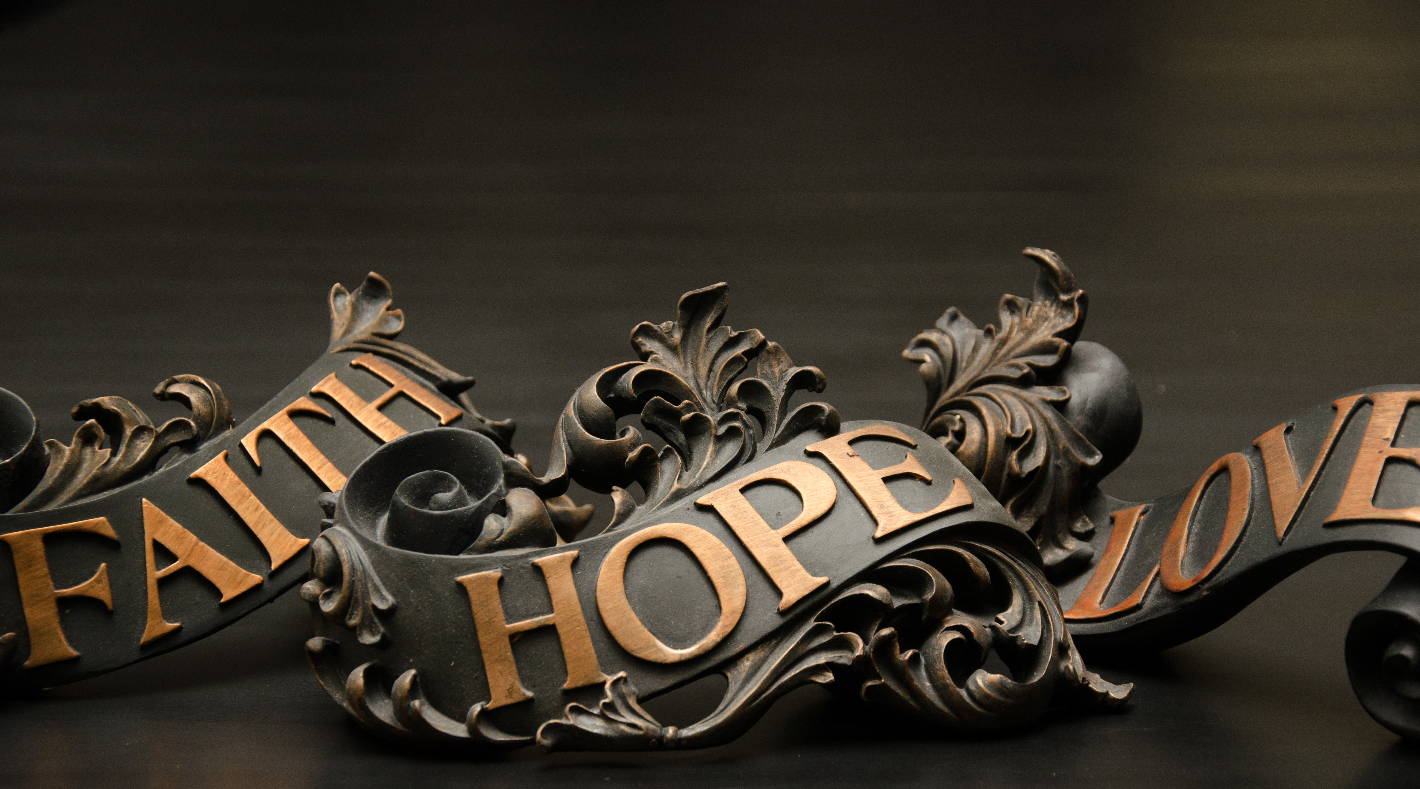 Faith Hope and Love Copper Scroll Decor
